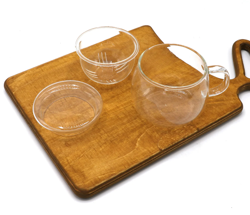 یک لیوان ساده که شما می توانید این لیوان ها را بر روی شعله مستقیم قرار دهید و دمنوش آماده شده خود را میل کنید ، یک لیوان دمنوش ساز از سه بخش تشکیل شده درب پیرکسی ، قسمتی که دمنوش یا قهوه را درون آن می ریزید یا همان فیلتر که آن هم از جنس پیرکس می باشد و خود لیوان اصلی ، که خود لیوان اصلی نیز از جنس شیشه ای یا پیرکس است