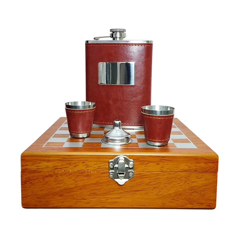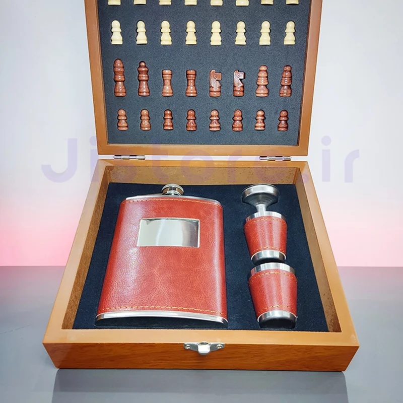 این ست قمقمه کتابی جیبی با روکش چرمی و دو عدد شات هم رنگ به همراه جعبه شطرنج چوبی شکیل + یک عدد قیف یکی از خاص ترین ست ها و همچنین می تواند یک انتخاب مناسب برای کادو به عزیزانی که دوستشان دارید باشد ، این ست قمقمه کتابی جیبی و شات تشکیل شده از چند آیتم که شامل 2 عدد شات و یک قمقمه جیبی و یک قیف می باشد