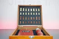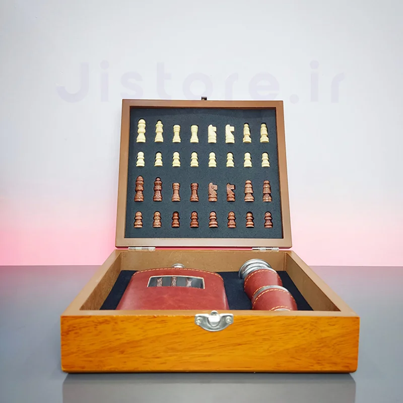 مشخصات کلی ست جعبه شطرنج چوبی و قمقمه کتابی جیبی چرمی :